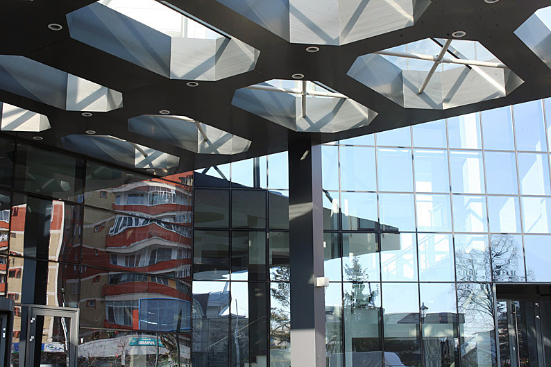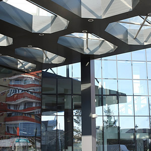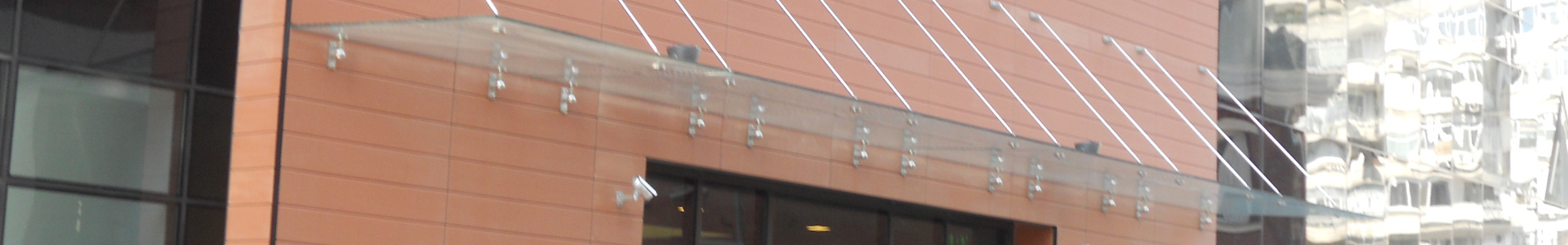 Canopies, interior partition walls, automated revolving doors, glass fins and all glass store fronts are also done by our company and we would be very glad to quote you or offer you more information about them.