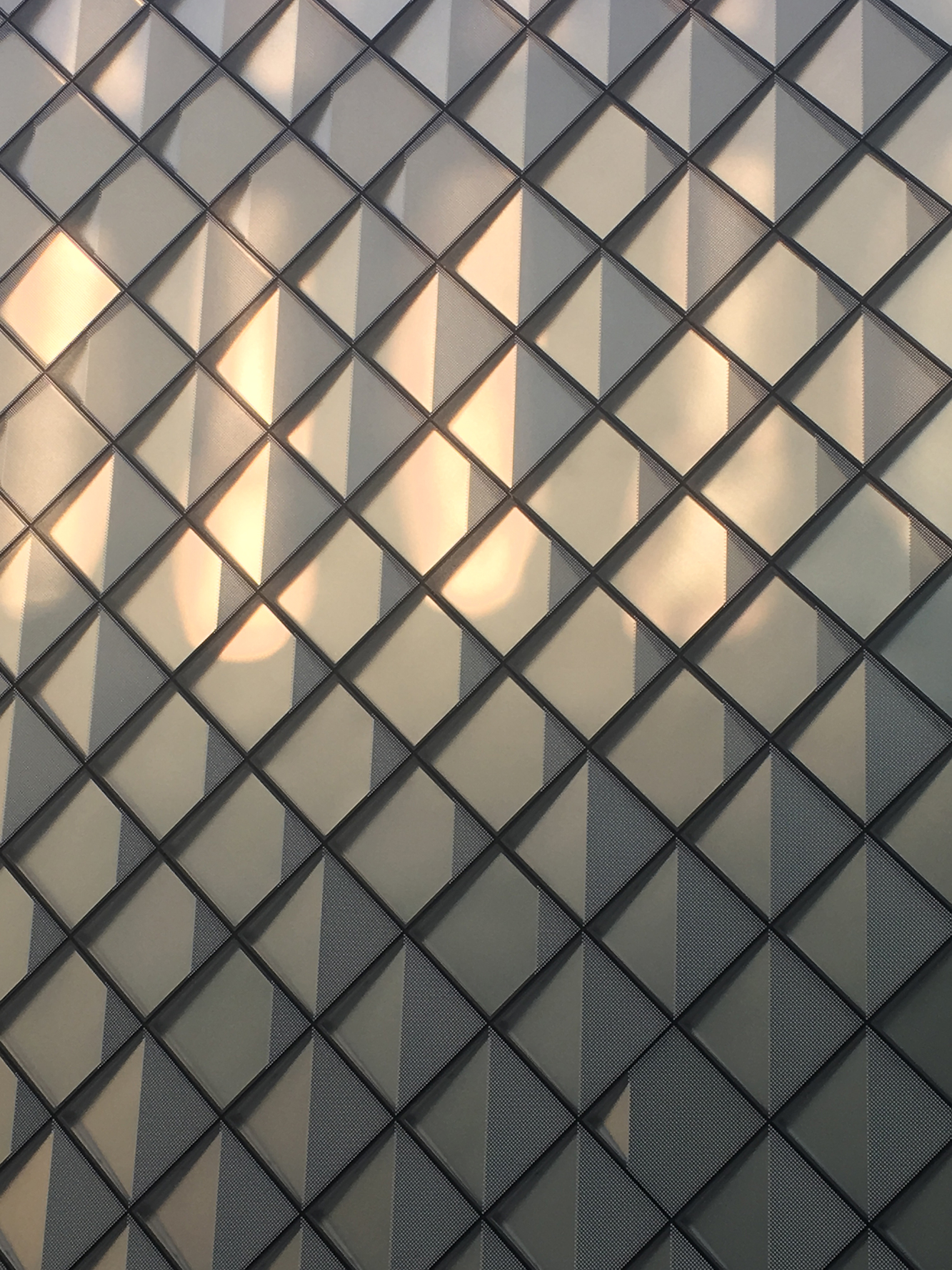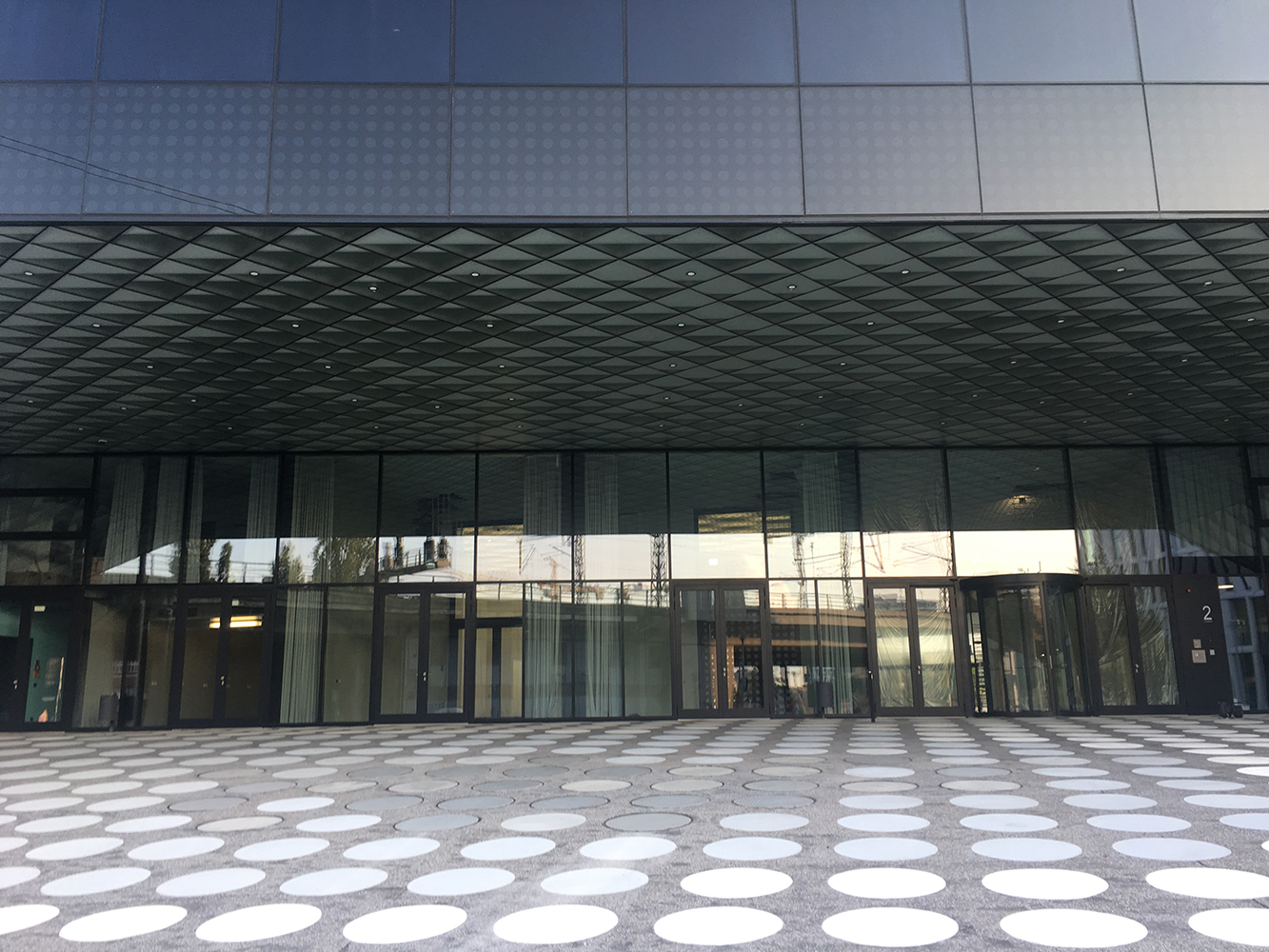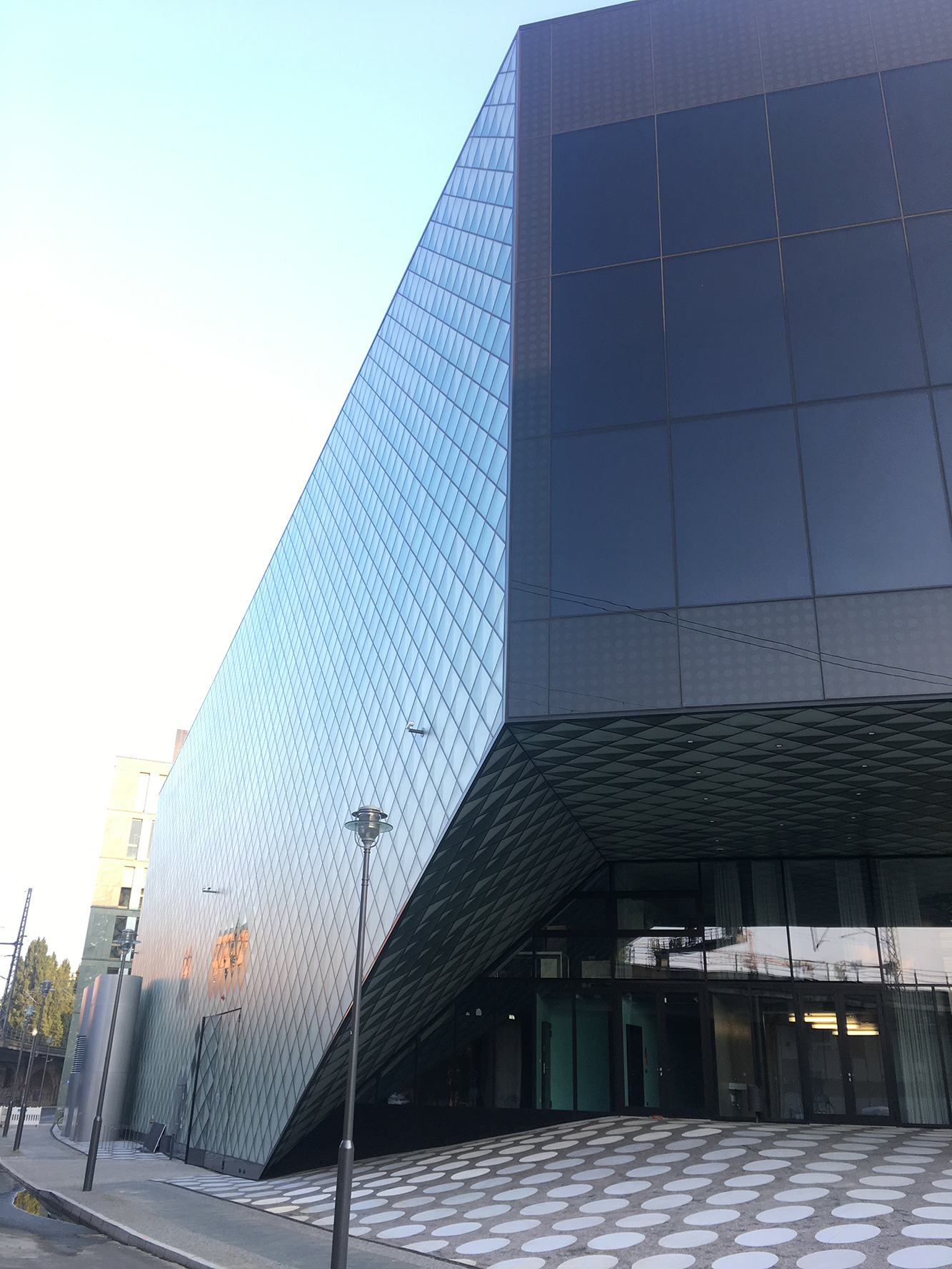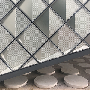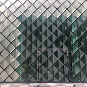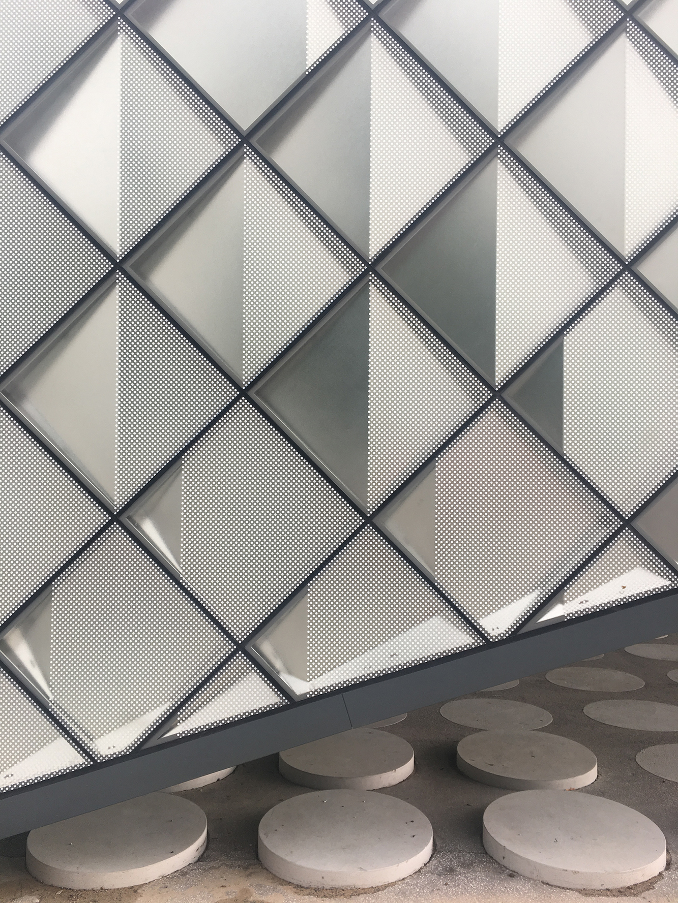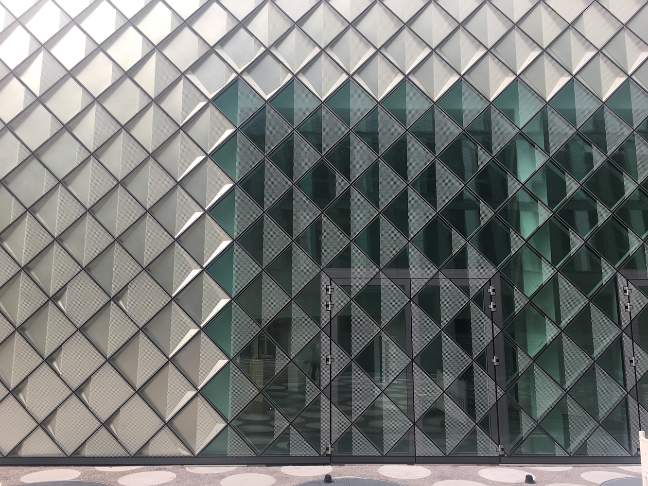 Special ventilated façade: Stainless steel boxes with textured glass reflectors