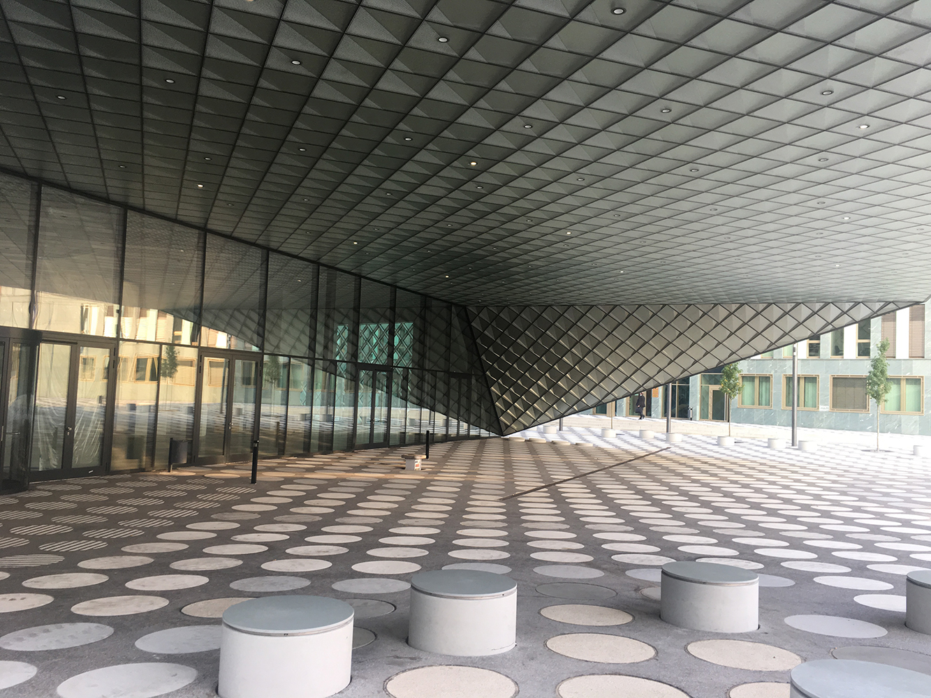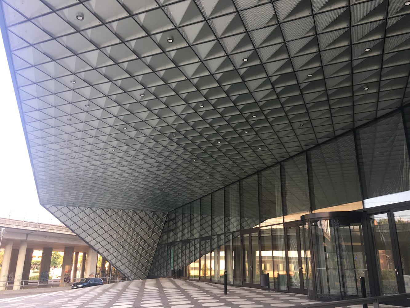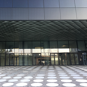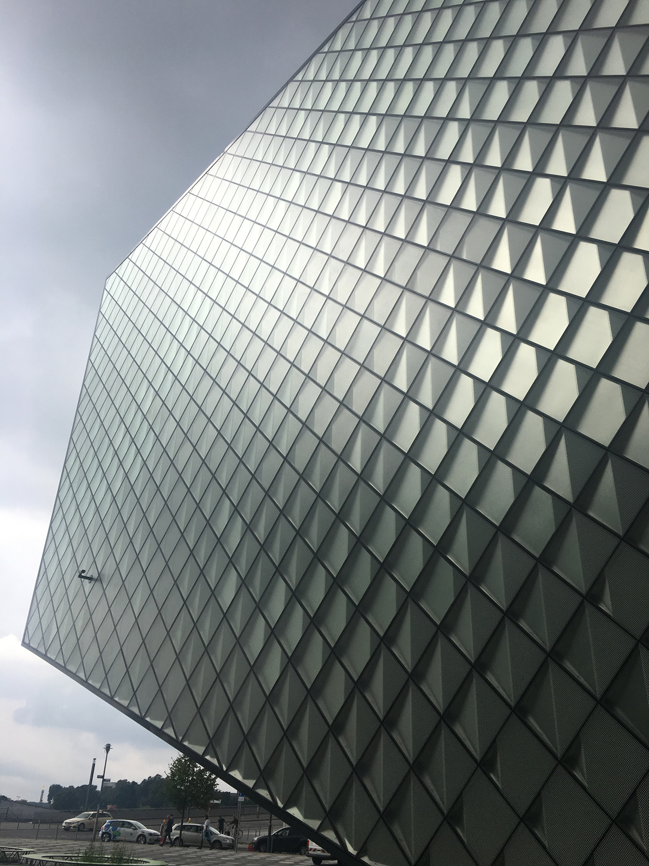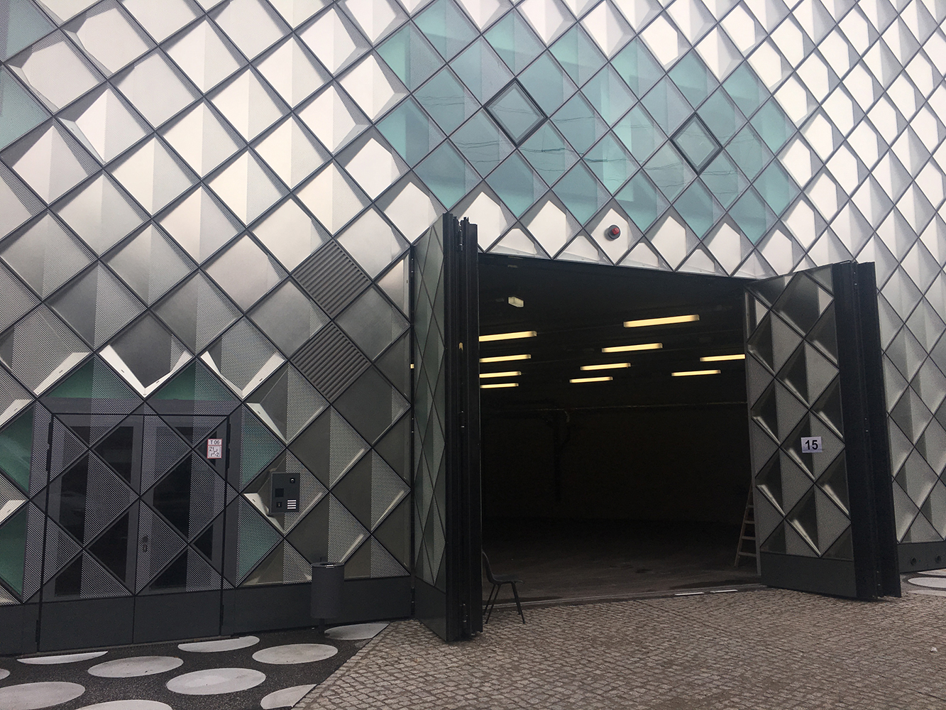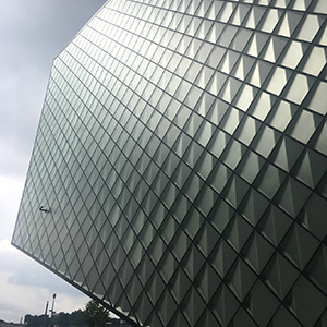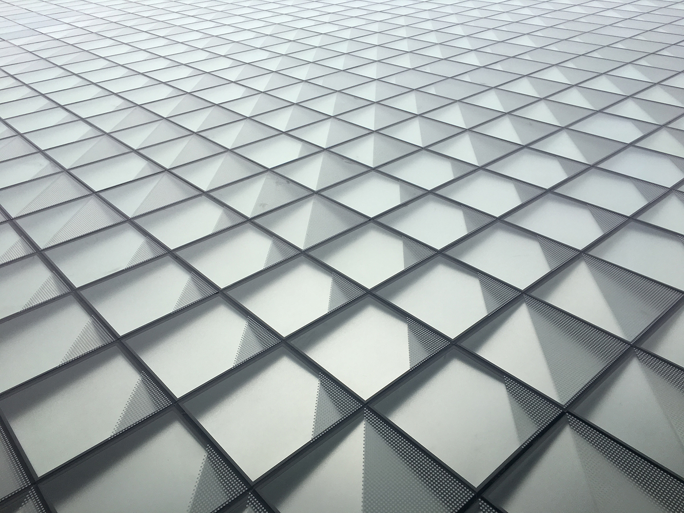 Special ventilated façade: Stainless steel boxes with textured glass reflectors