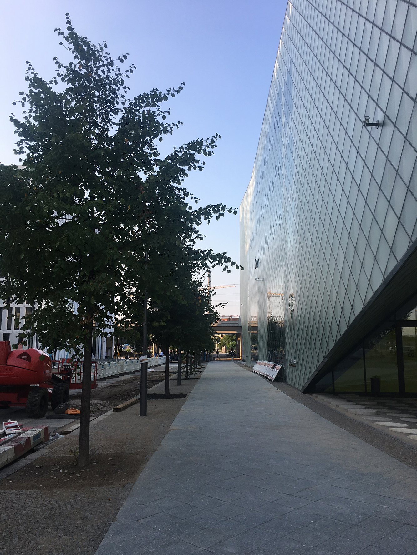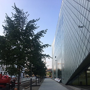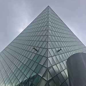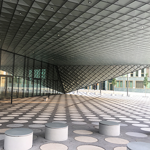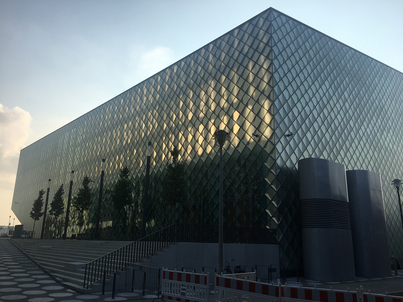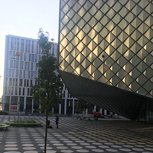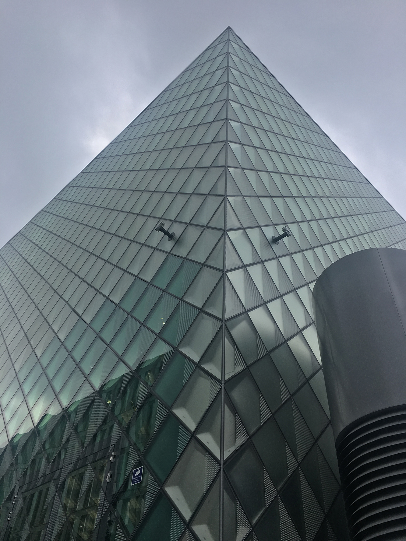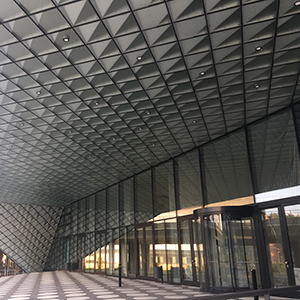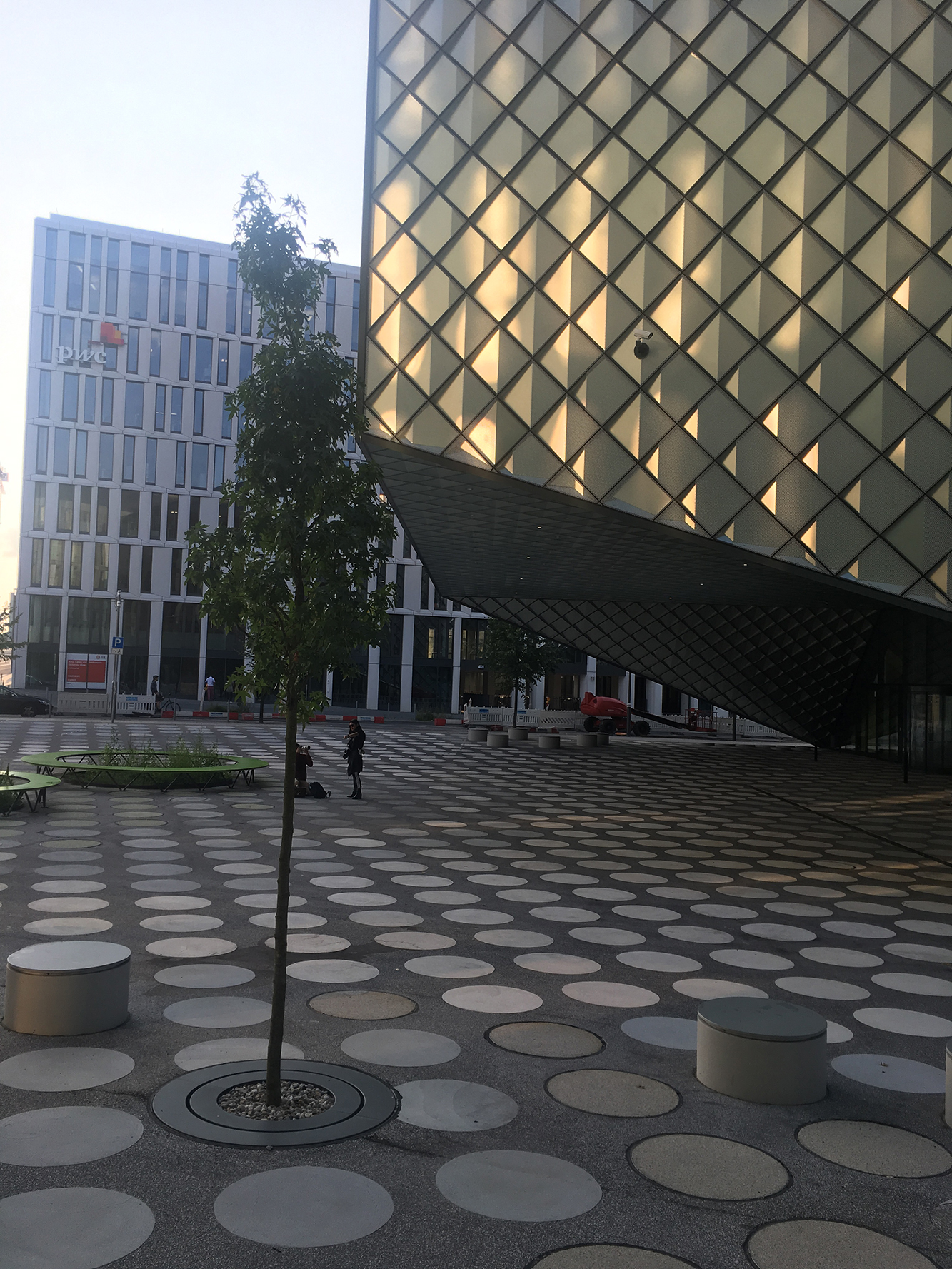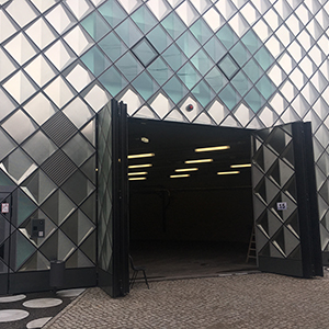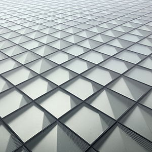Special ventilated façade: Stainless steel boxes with textured glass reflectors